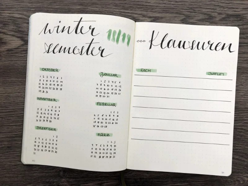 Bullet Journal Semesterplanung für Studenten