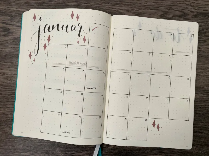 Auf der rechten Seite ist Platz für meine Ziele für den Januar und am Ende dann auch die Review des Monats.