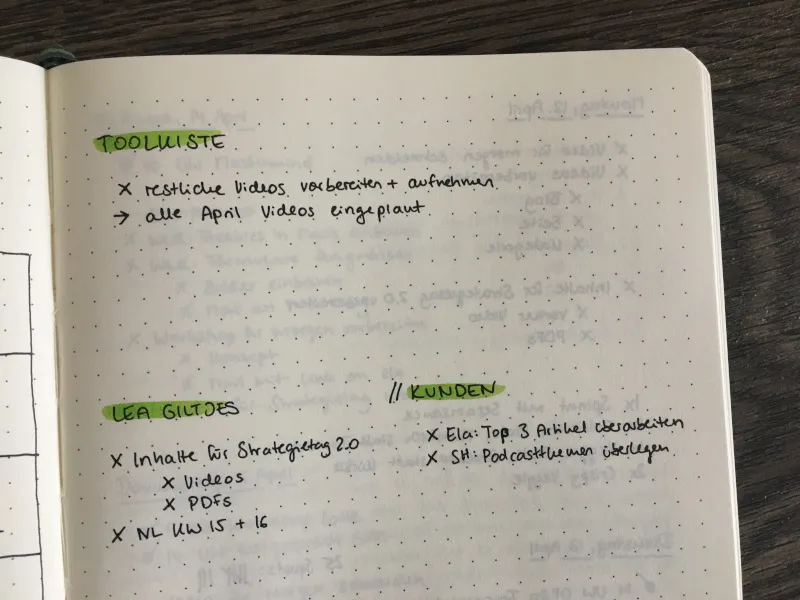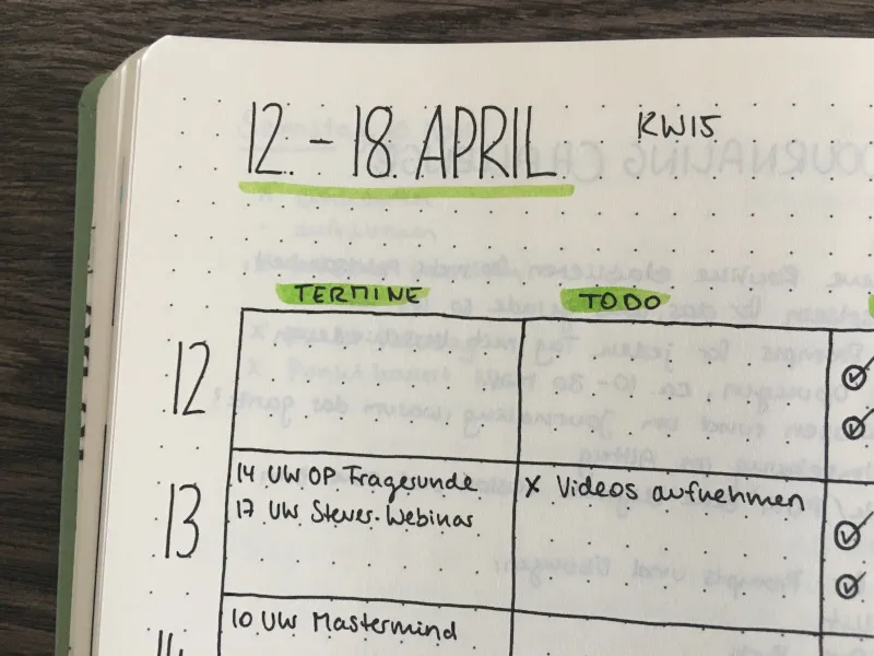 Das ist für mich deswegen so wichtig, weil ich das dann im Laufe der Woche bei meiner Tagesplanung direkt auf einen Blick sehe.