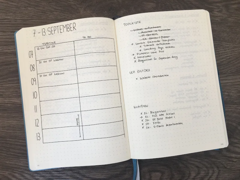 To do’s für eigene Projekte und für Kund*innen hab ich nach wie vor in meinen Monats-, Wochen- und Tagesübersichten - hier fange ich mit der Planung an, und manche Sachen wandern dann quasi von dort in Evernote & Co.