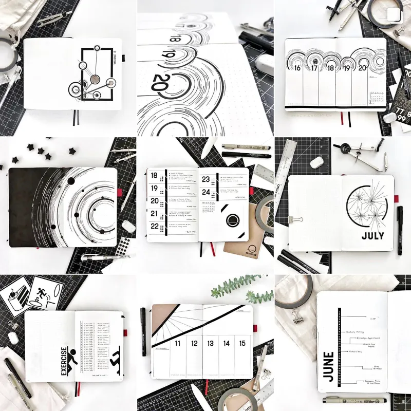 **Warum? **Auch Julias BuJo gehört eher in die minimalistische und cleane Ecke. Sie arbeitet viel mit Stempeln und klaren Linien. Dieses Design zieht sich auch durch ihr gesamtes Profil, das hauptsächlich in Grautönen gehalten und sehr durchdacht ist. Ihren Feed schaue ich mir auch immer gerne im Gesamten an, ich finde auf diese Art kommen die Bilder fast noch mehr zum tragen.