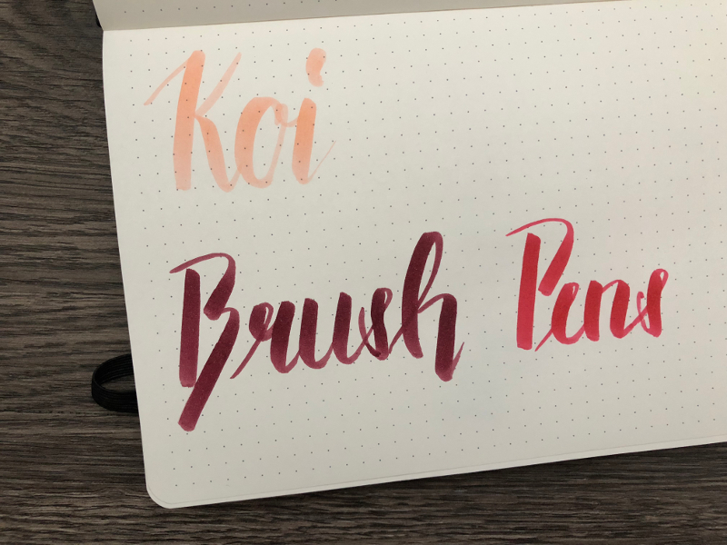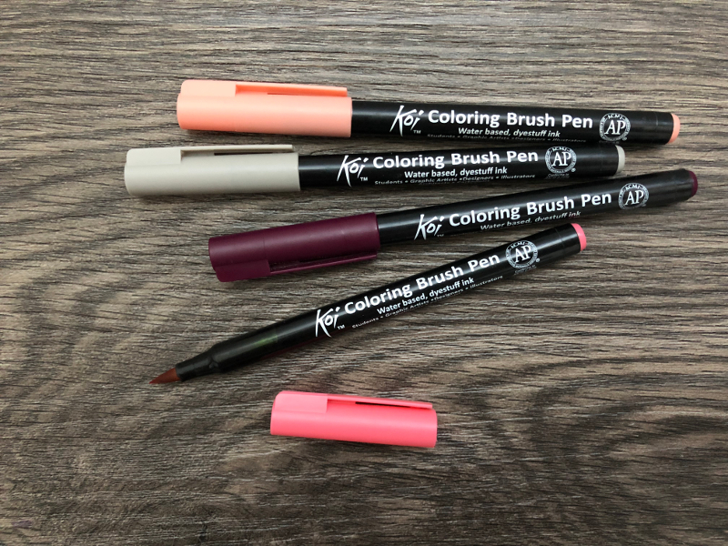 Eine weitere Möglichkeit sind die Koi Brush Pens der Marke Sakura. Diese kommen aus Japan und haben genau wie die Stifte von Edding nur eine Spitze. Diese ist aus Nylon, und in der Handhabung quasi nicht von denen der Tombows zu unterscheiden.