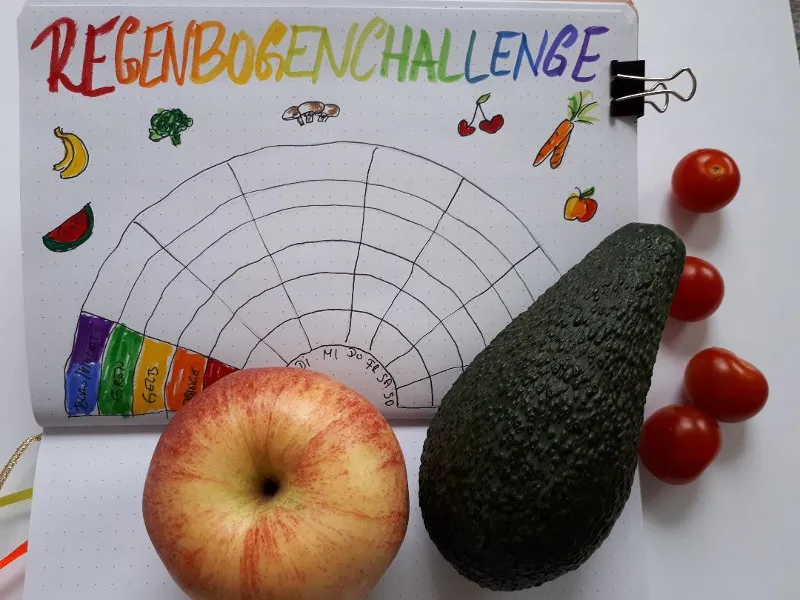 Gesunde Ernährung zeichnet sich ja auch dadurch aus, dass sie regional, saisonal und bunt wie ein Regenbogen ist. Bei letzterer Vorgabe setzt dieser Tracker an, den du am besten gemeinsam mit deinem Kind führst.
