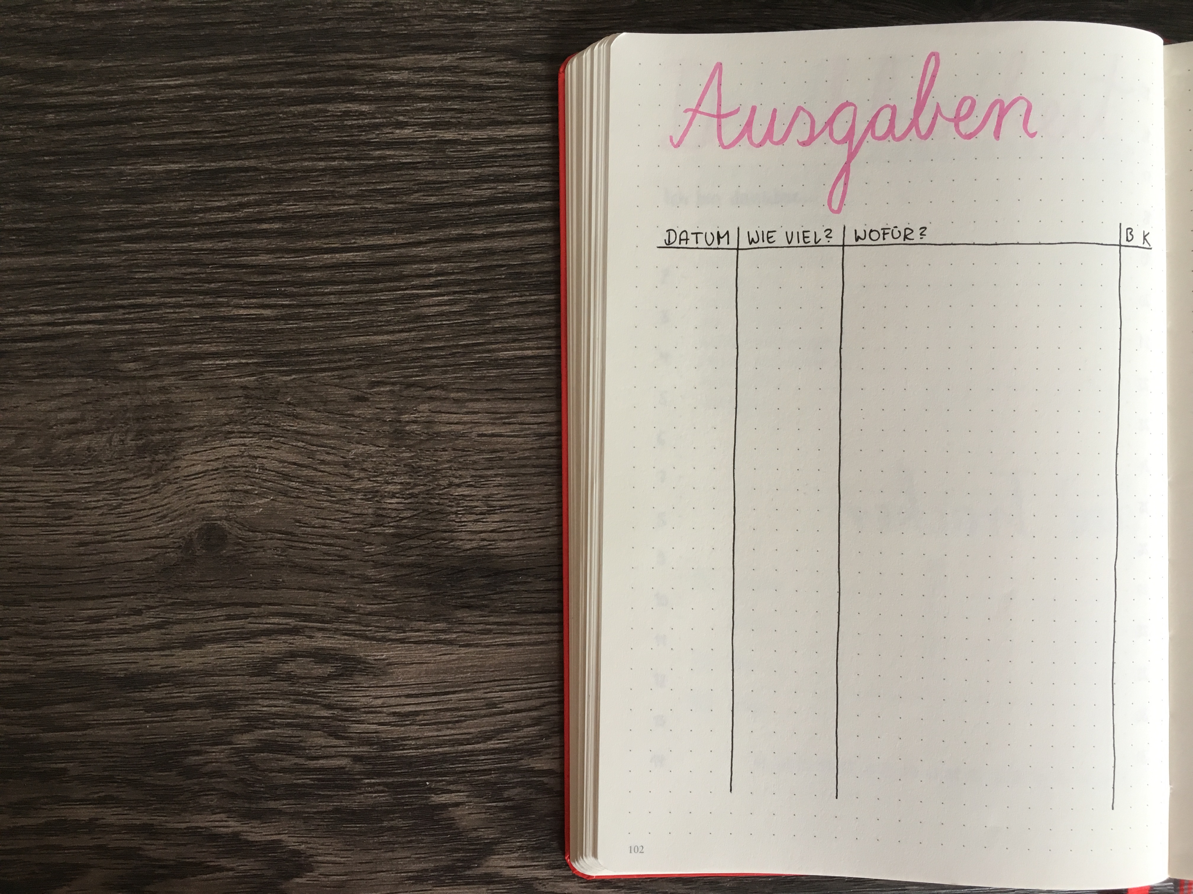 Das ist eine Seite, die ich nicht in jedem Monat anlege, nur immer mal wieder für einen oder zwei Monate hintereinander. Mir hilft es sehr, zwischendurch mein Bewusstsein für meine monatlichen Ausgaben zu stärken.