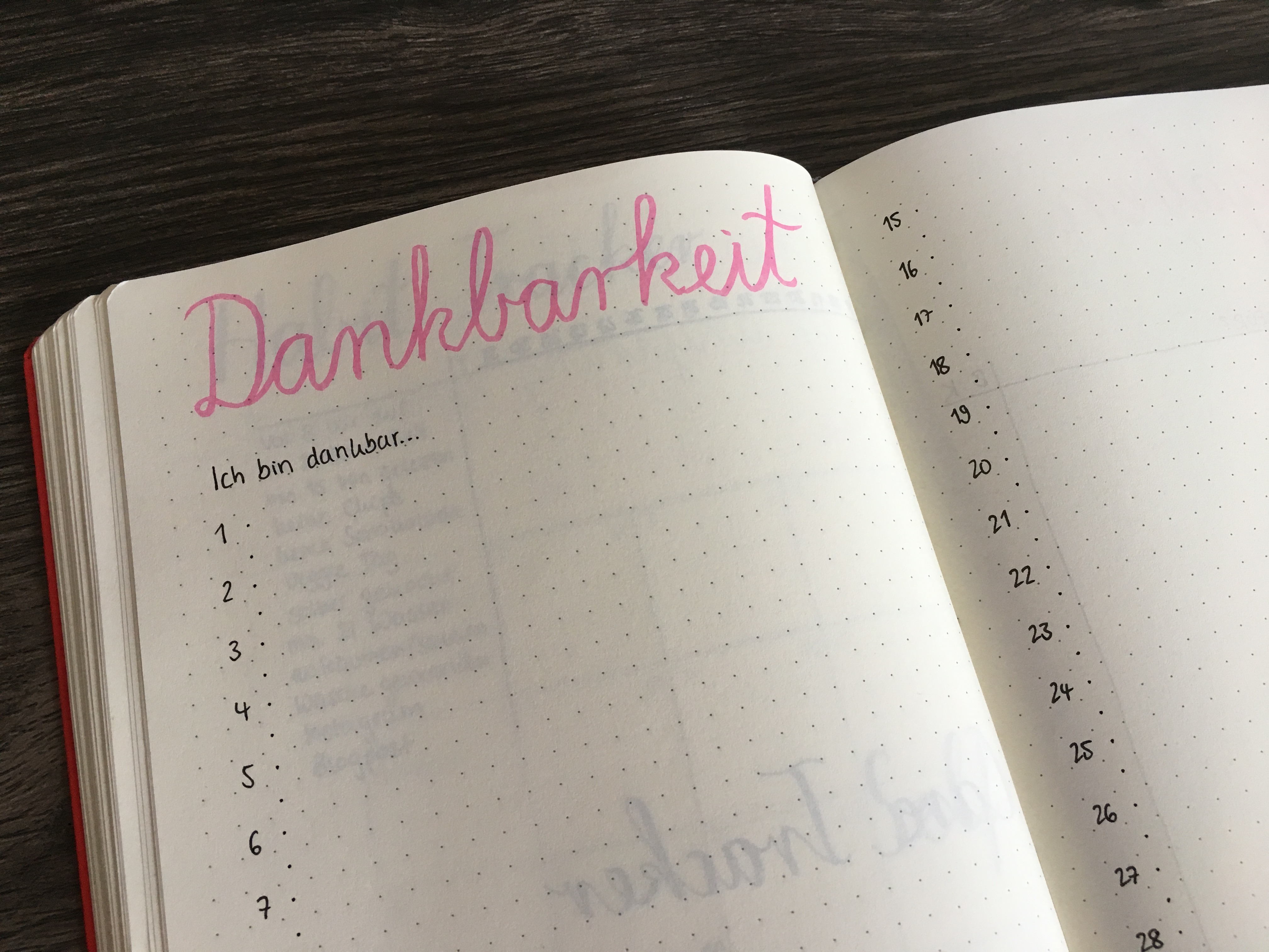 Ich versuche außerdem, nicht zweimal im Monat genau das gleiche zu schreiben. Es gibt so viel für das wir dankbar sein können, dass mir das auch nicht wirklich schwerfällt. Wenn man damit einmal angefangen hat, stärkt sich auch am Tag selber das Bewusstsein dafür und man merkt zwischendurch schon, wie dankbar man für bestimmte Dinge oder Situationen ist.