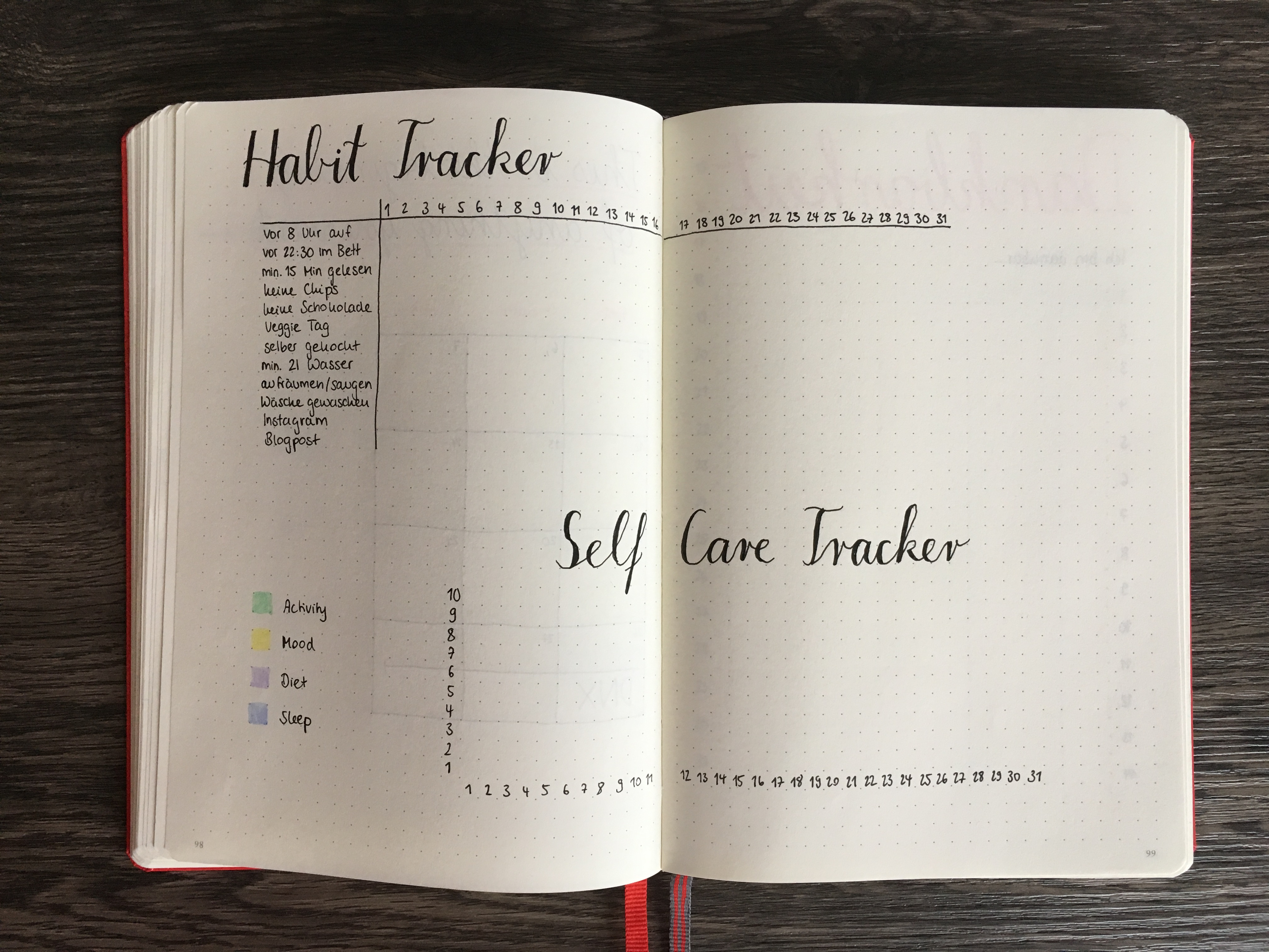Auf der gleichen Doppelseite habe ich dann auch immer meinen Self Care Tracker. Wie dieser funktioniert, hat Theresa hier erklärt :)