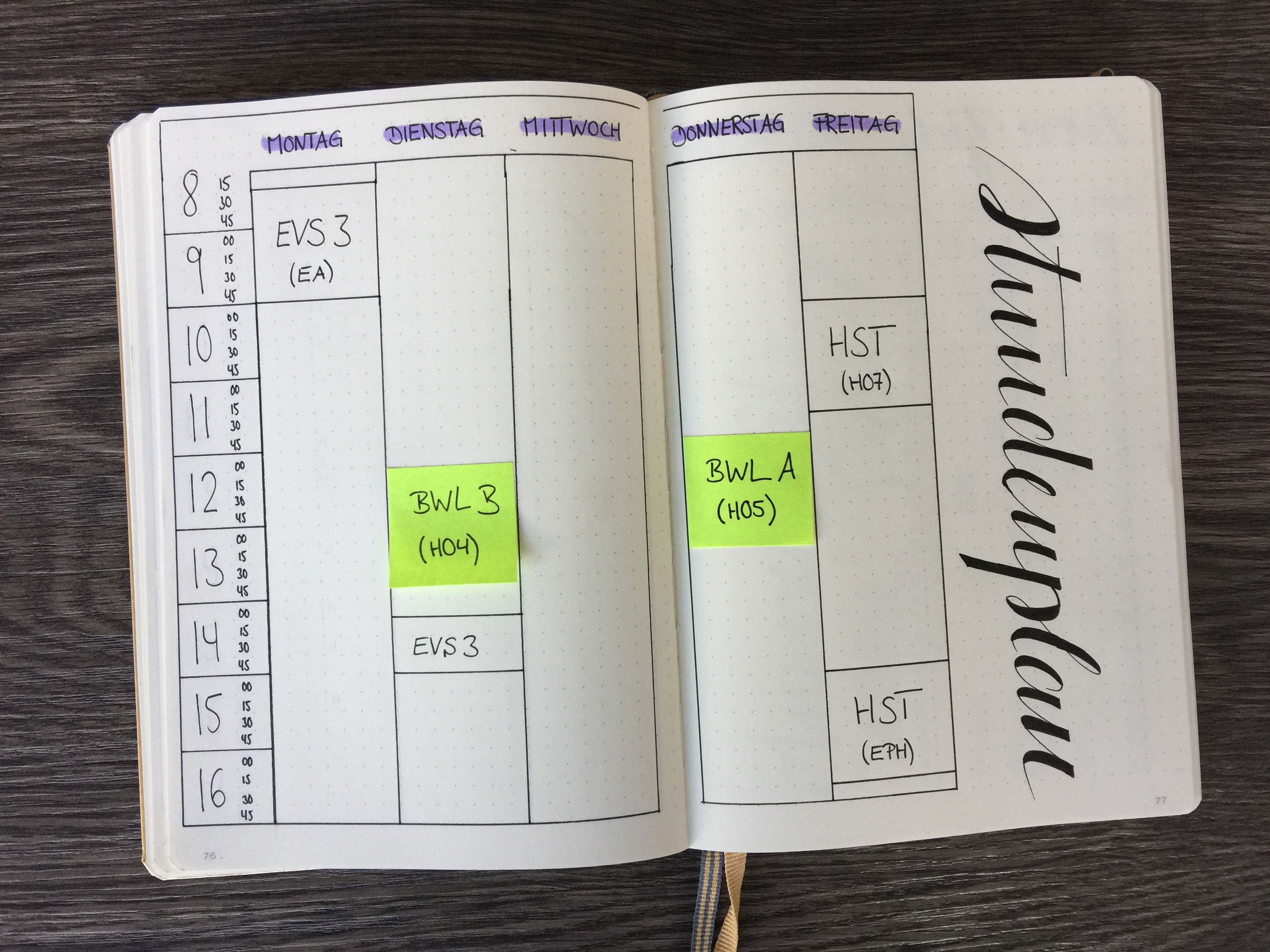 Neben dem Überblick über das ganze Semester darf bei der Bullet Journal Semesterplanung natürlich auch der eigentliche Stundenplan nicht fehlen.