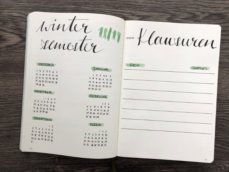 Bullet Journal Semesterplanung für Studenten