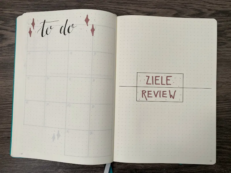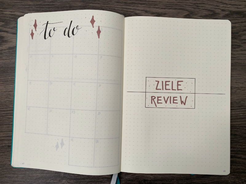 Auf der rechten Seite ist Platz für meine Ziele für den Januar und am Ende dann auch die Review des Monats.