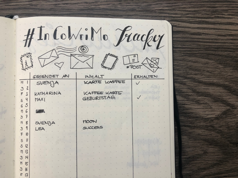 Im Februar jeden Jahres findet der sogenannte “International Correspondence Writing Month” statt. Das bedeutet, dass du einen Monat lang jeden Tag einen handgeschriebenen Brief oder eine Karte verschickst. Um da den Überblick zu behalten, bietet sich ein **InCoWriMo Tracker **an.