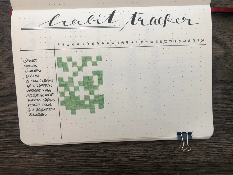 Ein wichtiger und nützlicher Bestandteil eines Bullet Journals sind die Bullet Journal Tracker. Dabei werden verschiedene Aufgaben täglich abgehakt.