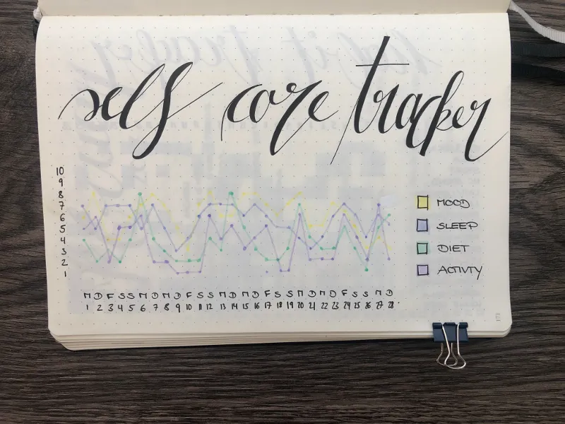 Ein weiterer Bullet Journal Tracker, der sehr zu empfehlen ist, ist der Self Care Tracker. Er kann dir dabei helfen, bewusster durchs Leben zu gehen und mehr auf dich selbst zu achten.