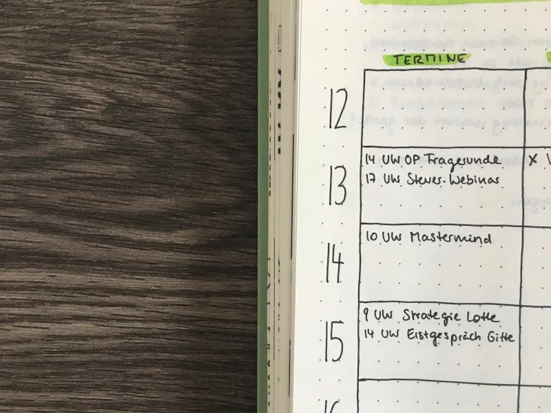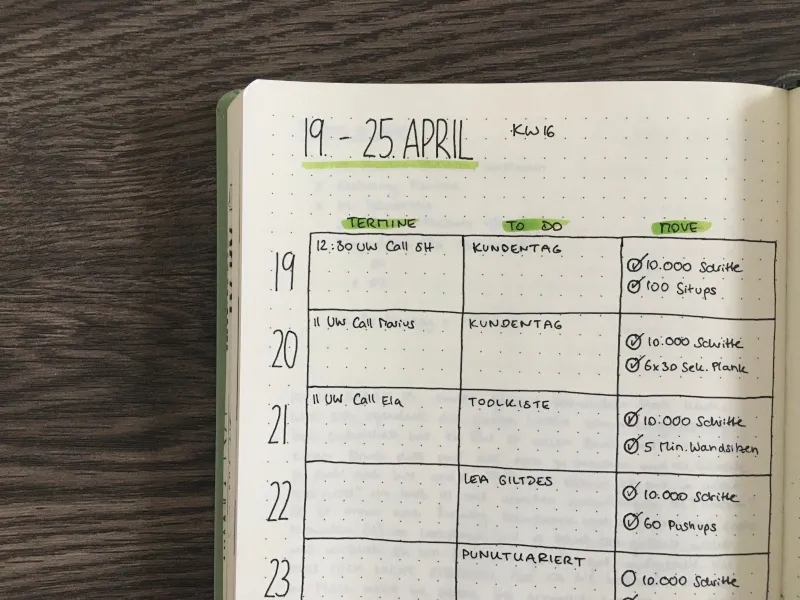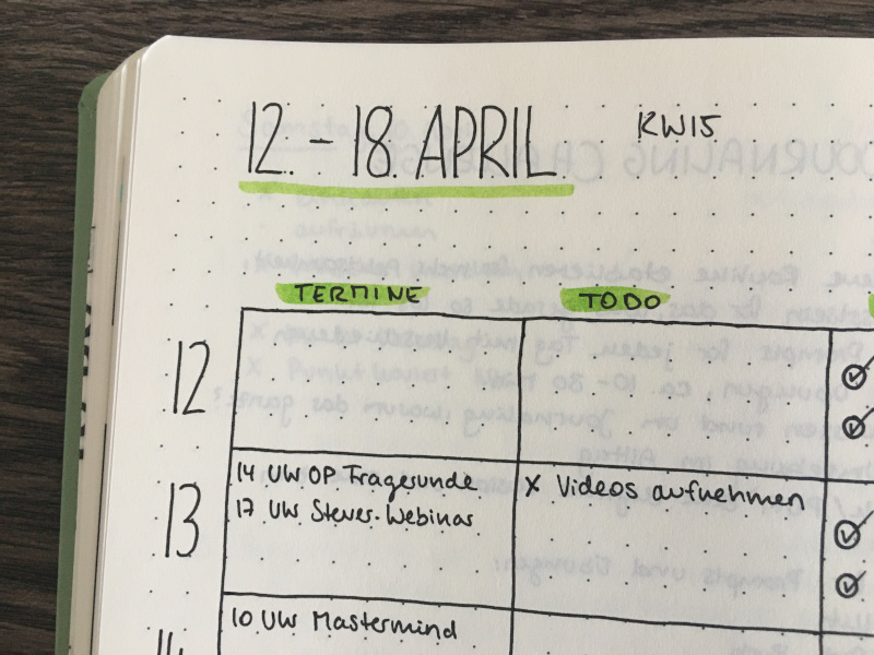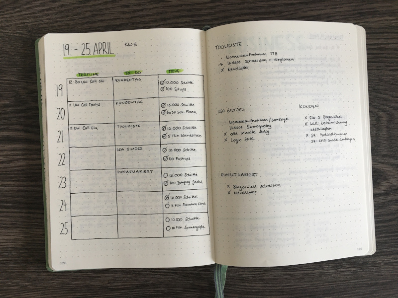 Das ist für mich deswegen so wichtig, weil ich das dann im Laufe der Woche bei meiner Tagesplanung direkt auf einen Blick sehe.