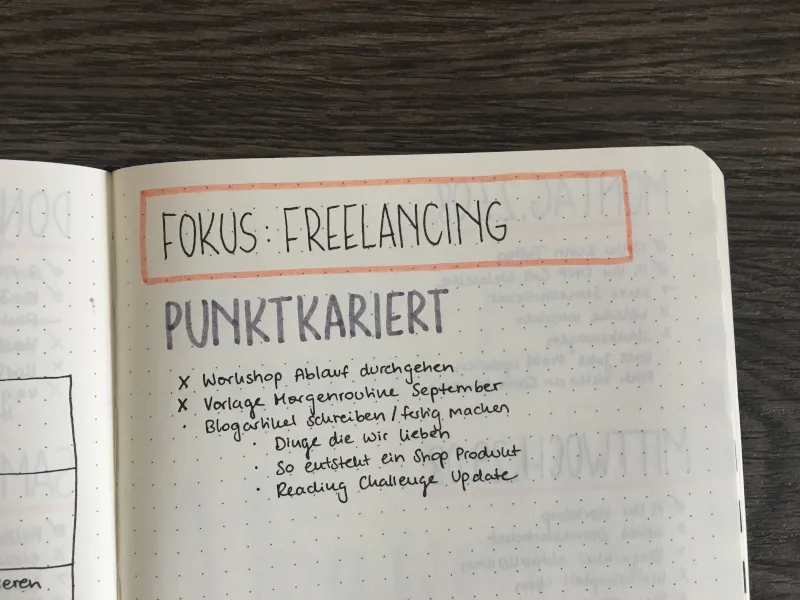 In manchen Wochen lege ich außerdem einen konkreten Wochenfokus fest. Wenn ich arbeitsmäßig sehr viel zu tun habe, hilft mir das total, die Prioritäten entsprechend zu setzen. Das halte ich dann auch in meiner Wochenübersicht fest: