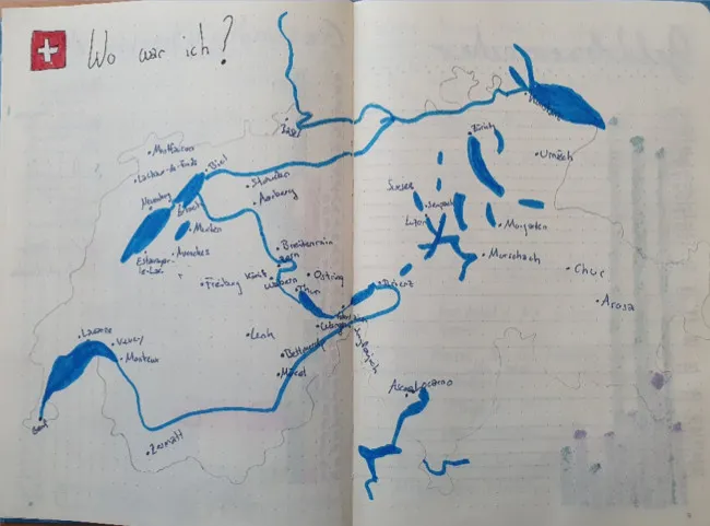 Für diesen Tracker habe ich die Umrisse der Schweiz aufgezeichnet und trage nun jeden Ort ein, den ich besucht habe. Was ich dort gemacht und wie lange ich mich an diesem Ort aufgehalten habe, ist zweitrangig.