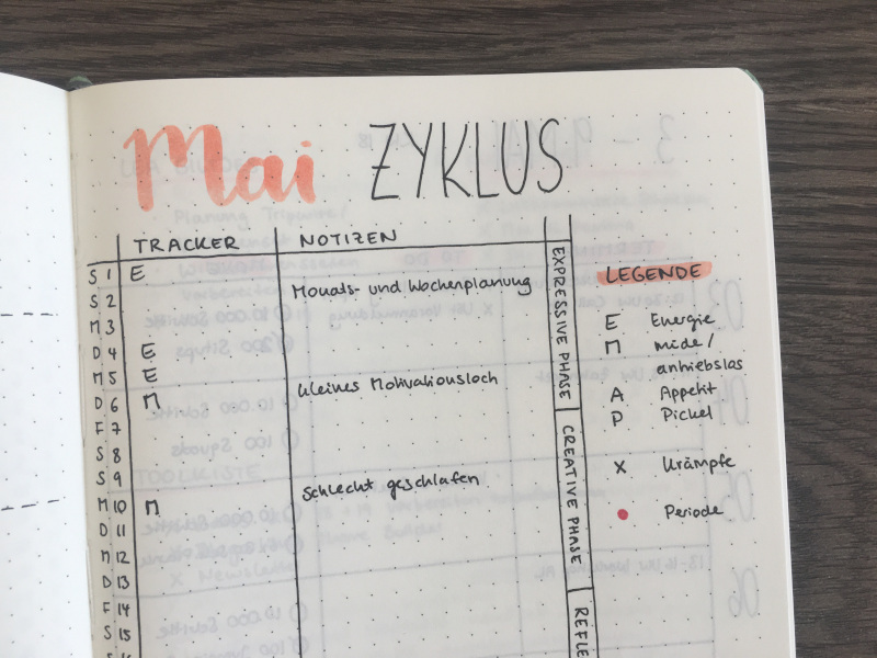 Außerdem wollte ich mich im Mai zum allerersten Mal an einem Zyklus-Tracker versuchen. Letztes Jahr habe ich ein Buch über die verschiedenen Phasen im Zyklus gelesen und für was welche Phase jeweils gut geeignet ist und für was eher nicht.