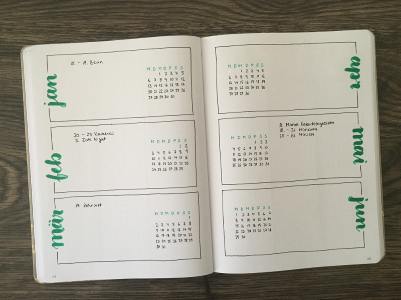 Wenn du sechs Monate in deinen Future Log eintragen möchtest, dann ist die nächste Gestaltungsmöglichkeit vielleicht etwas für dich!