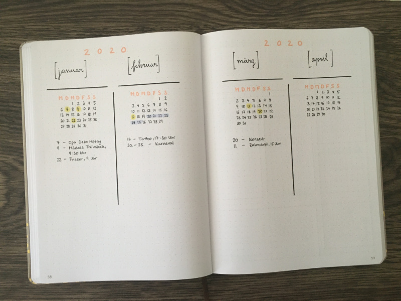 Die nächste Variante ist besonders dann gut geeignet für dich, wenn du nicht ganz so viele Termine hast, die du in deinen Future Log einträgst.