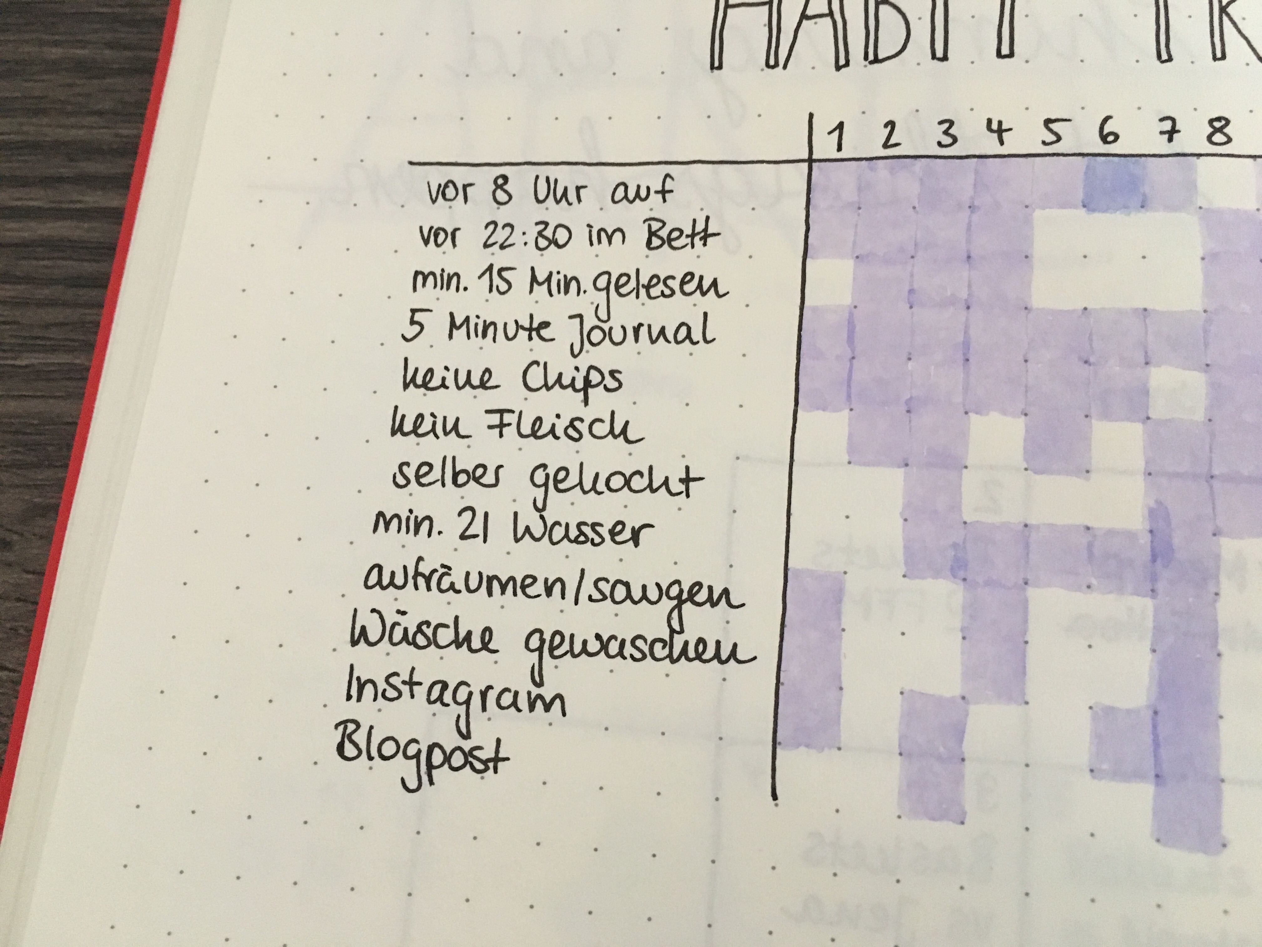 Aber auch tägliche Dinge wie Bett machen oder Küche aufräumen kannst du in dein Bullet Journal integrieren. Hier bietet sich die Nutzung des Habit Trackers an.