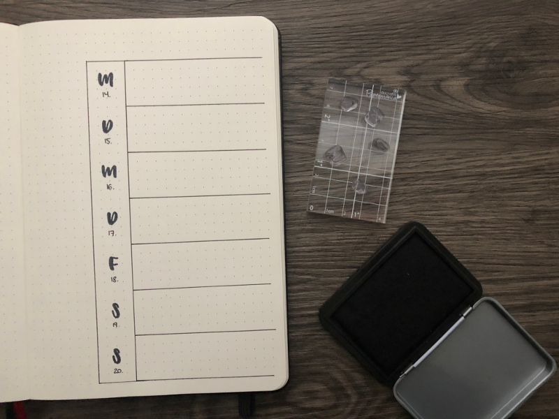 Auch für deine Wochenübersichten eignen sich Stempel, dabei habe ich nun nur die Anfangsbuchstaben der Wochentage gewählt und in die jeweilige Zeile gestempelt. Ganz einfach und minimalistisch, aber es macht trotzdem etwas her!