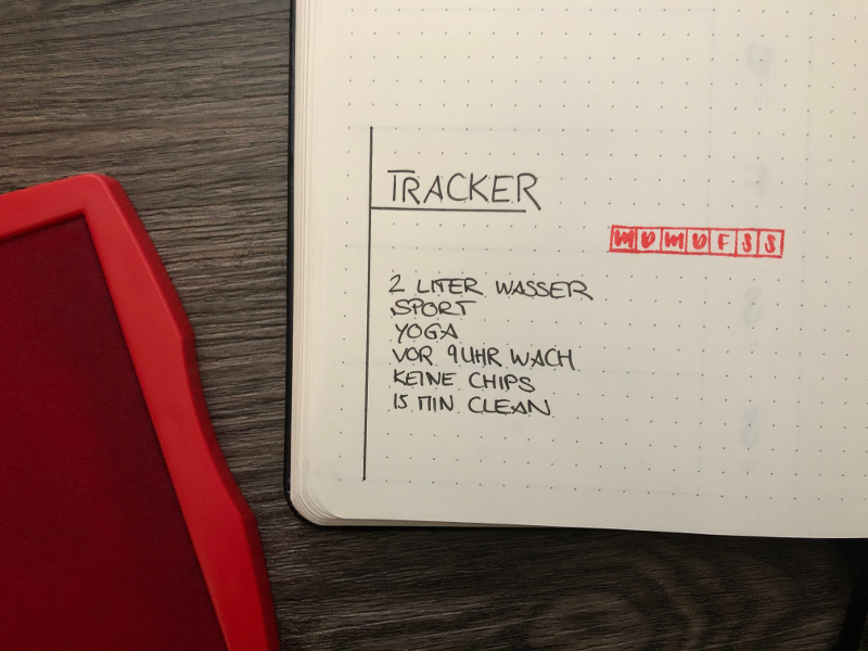 Für den wöchentlichen Habit Tracker habe ich zum roten Stempelkissen gegriffen und ihn somit etwas aufgepeppt.