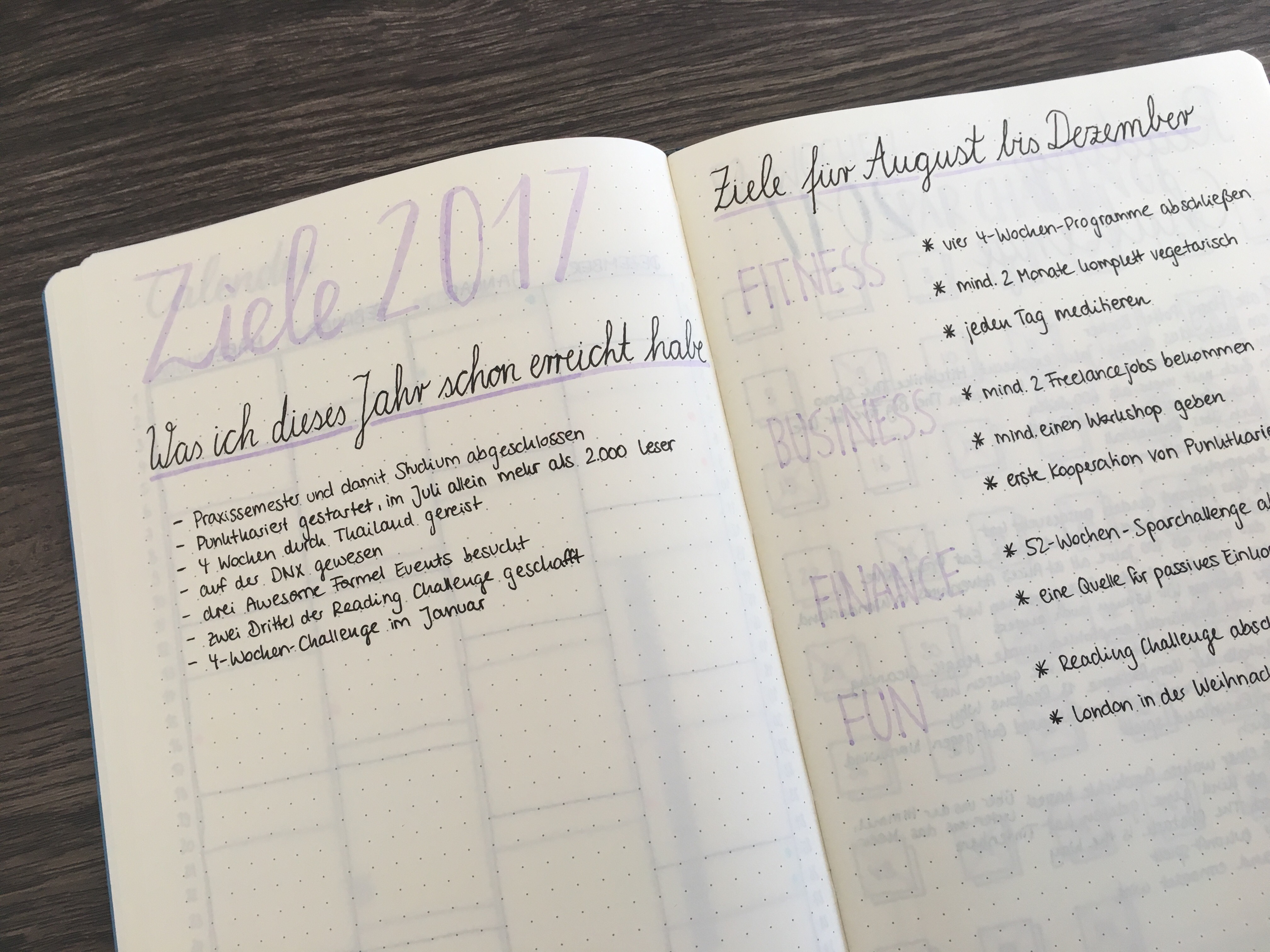 Wie gesagt: Ich liebe es, ein neues Bullet Journal zu starten! Dieses Mal habe ich den Wechsel sogar dazu genutzt, meine Ziele für 2017 zu überarbeiten bzw. an die restlichen Monate anzupassen.
