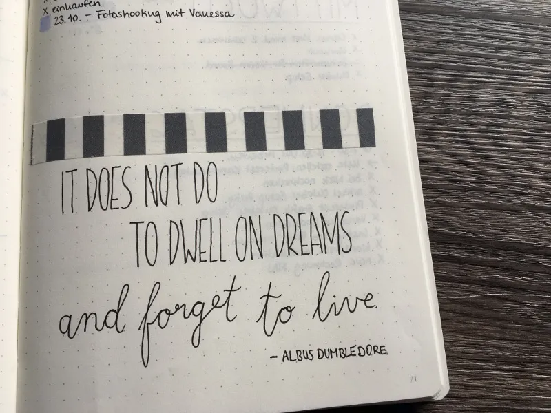 Wie die Überschrift schon sagt, ist das wirklich ganz simpel: Wenn du auf einer Seite in deinem Bullet Journal verschiedene Einträge hast, kannst du sie mit einem Streifen Washi Tape gut voneinander trennen.