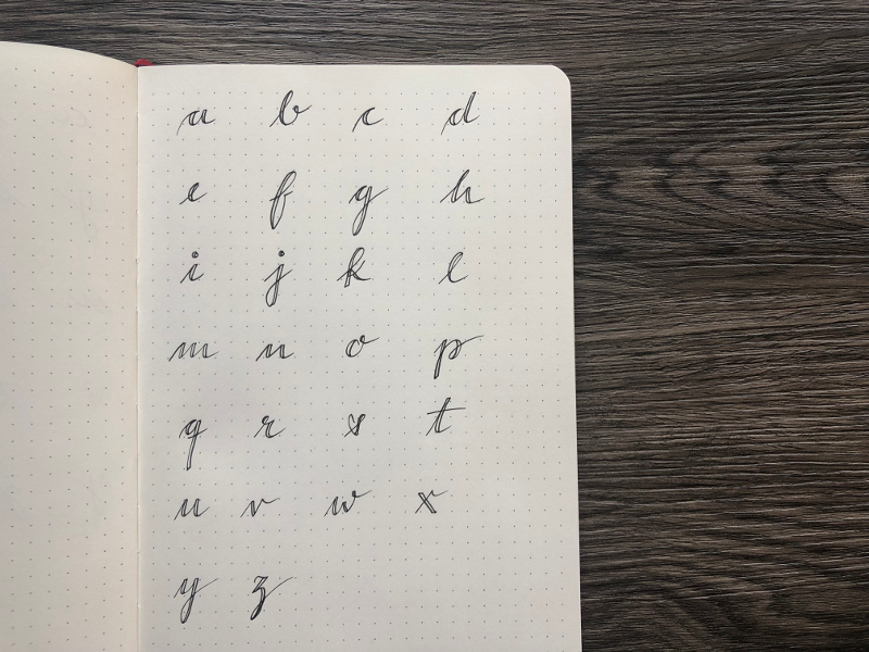 Auf dem Bild siehst du als Beispiel das ABC in meiner Schreibschrift, so wie sie sich in den letzten Monaten herauskristallisiert hat. Auffallend ist hier vielleicht, dass das n und das u quasi gleich aussehen. Ich habe mir das irgendwann zu Schulzeiten so angewöhnt und bekomme es nun mittlerweile nicht mehr aus meinem Schriftbild heraus. Aber anhand des Kontexts ist in den meisten Fällen schnell klar, um welchen Buchstaben es sich handelt :)